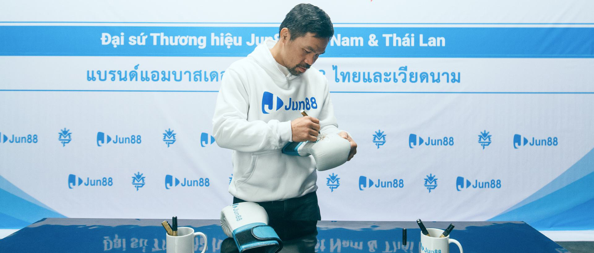 Với những thành tựu ấn tượng trong sự nghiệp thể thao, Manny Pacquiao đã được lựa chọn làm Đại sứ Thương hiệu cho thương hiệu Jun88 – một trong những nhà cung cấp dịch vụ cá cược, giải trí trực tuyến hàng đầu. Việc Manny Pacquiao trở thành Đại sứ Thương hiệu Jun88 không phải là một sự trùng hợp ngẫu nhiên mà là một sự kết hợp giữa sức mạnh thể thao và tinh thần chiến đấu không ngừng nghỉ.